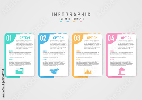 Wall mural : Infographic 4 options business plan template for success colored squares with dotted lines color let