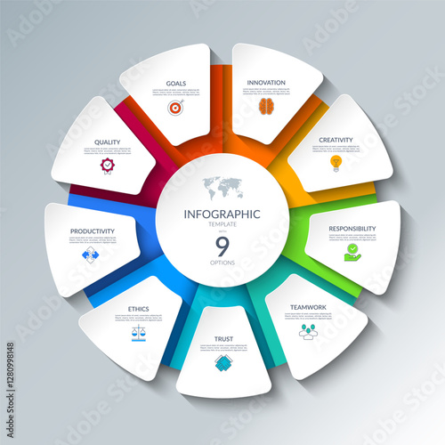 Infographic circular diagram with 9 options - round chart that can be used for business presentationsWall mural