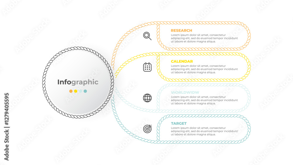 Wall mural : Infographic contains 4 sections - thin line rounded rectangular shape and rope connected to a central