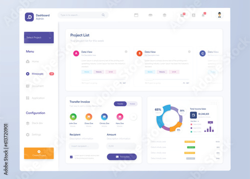 Wall mural : Infographic dashboard - ui design with graphs, charts and diagrams - web interface template for busine