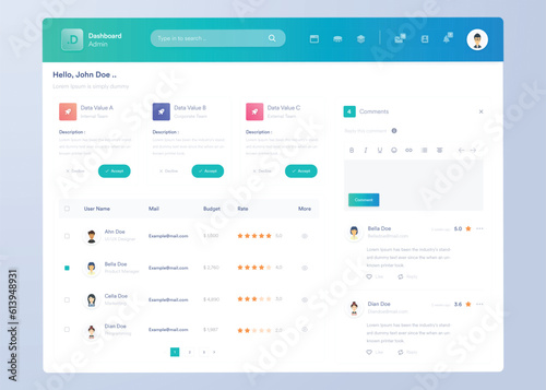 Wall mural : Infographic dashboard - ui design with graphs, charts and diagrams - web interface template for busine