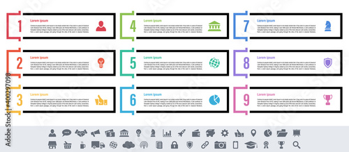 The watermark will not be included on Wall mural.: Infographic design business concept vector illustration with 9 steps or options or processes represe