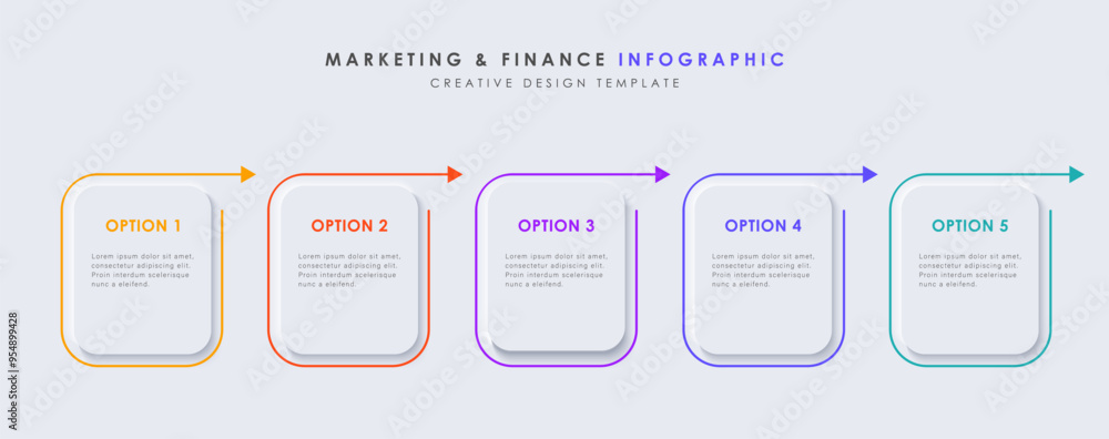 Infographic design template with 5 options or steps - minimal design - useful for process diagram, preWall mural