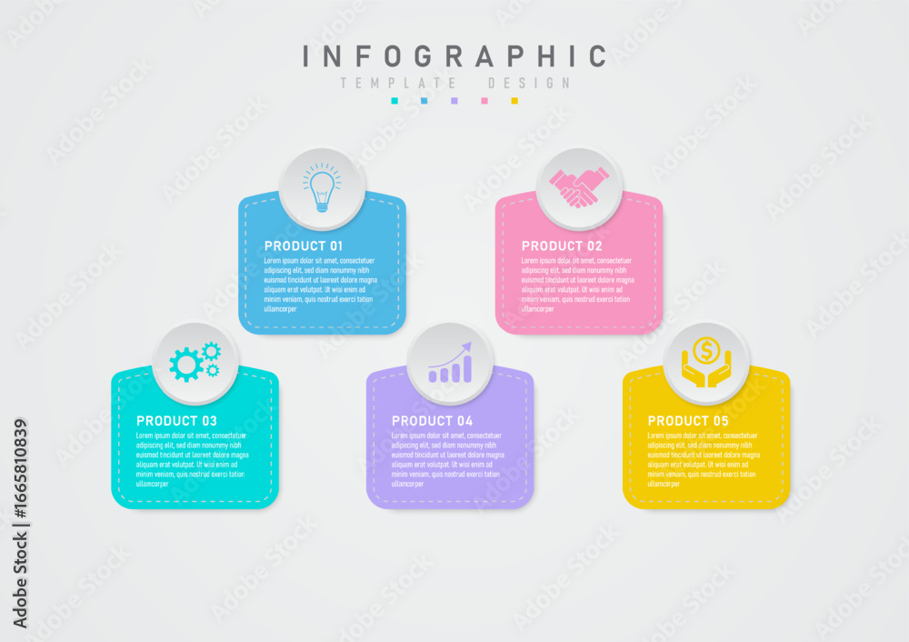 Wall mural infographic design template with multicolored pastel colored rounded rectangles and grey dashed outl - Wall murals Wall mural infographic design template with multicolored pastel colored rounded rectangles and grey dashed outl - Wall murals