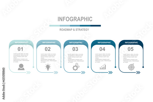 Wall mural : Infographic elements template, business concept with 5 steps, multi color minimal rectangle shape de