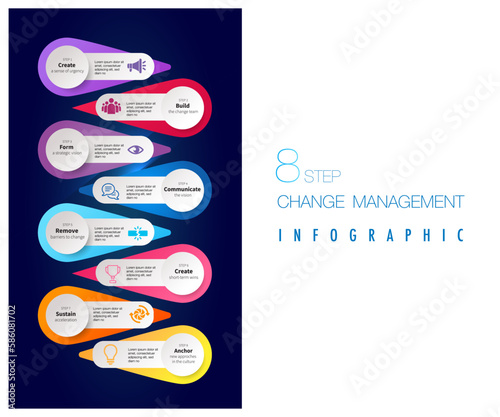 Wall mural : Infographic for 8 stages of the change management model template in square shape, you can easily cha