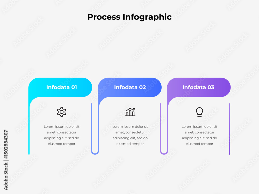 The watermark will not be included on Wall mural.: Infographic illustrating three distinct data points using vibrant colors, modern icons, and descript