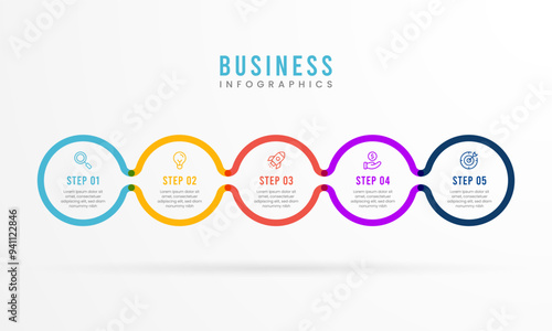 Infographic illustration design template with icons and 5 steps or options - can be used for process,Wall mural