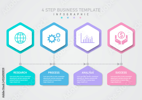 Wall mural : Infographic template 4 steps business planning - multicolored hexagons below and white hexagons above