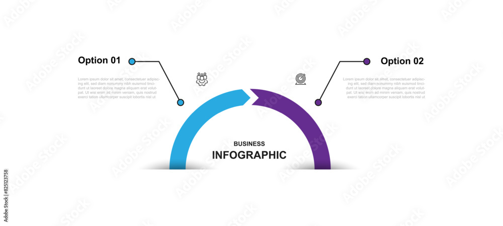 Wall mural infographic template vector element with 2 step process suitable for workflow, business information, - Wall murals Wall mural infographic template vector element with 2 step process suitable for workflow, business information, - Wall murals