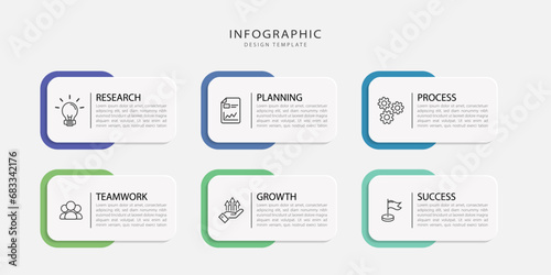 Wall mural : Infographic template - 6 step timeline journey, flat simple infographics design template - presentatio
