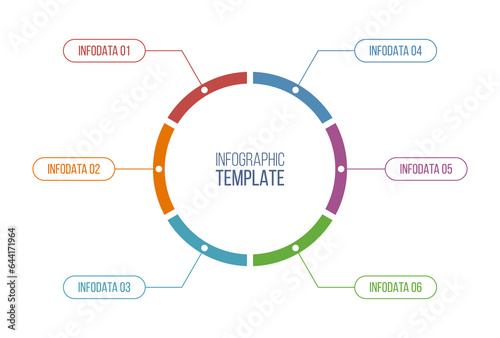 Wall mural : Infographic vector color template - circular round chart with 6 options, steps or parts - process char