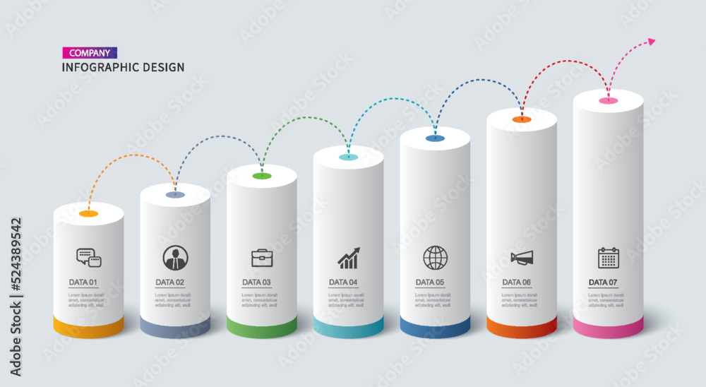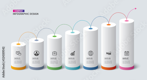 Wall mural infographics cylinder timeline with 7 number data template. vector illustration abstract background.