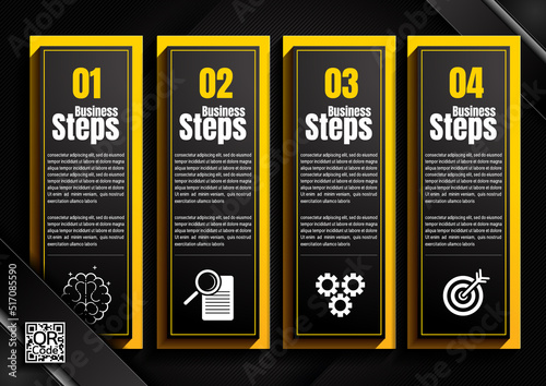 Infographics design, 4 process chart diagram template for presentation workflow, abstract timeline eWall mural