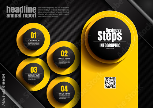 Infographics design, 4 process chart diagram template for presentation workflow, abstract timeline eWall mural