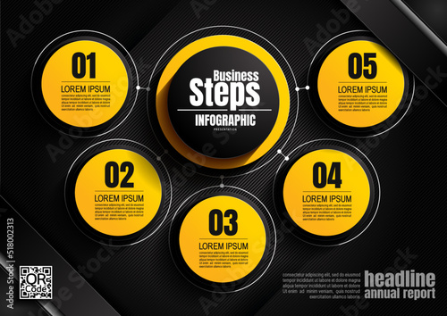 Wall mural : Infographics design, circle 5 process chart diagram template for presentation workflow, abstract tim