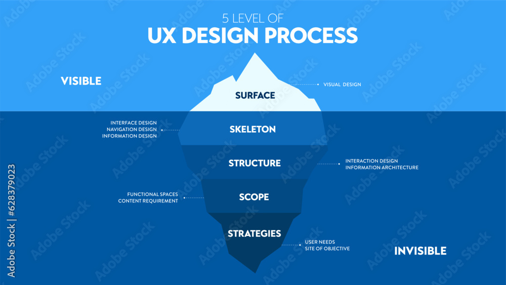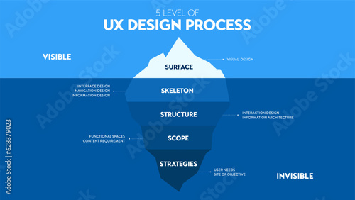 Infographics of ux design level show iceberg in blue underwater and visible surface vector for preseWall mural