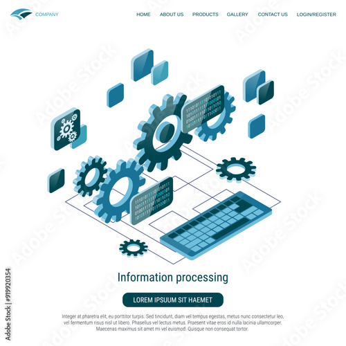 Information processing, data computing flat 3d isometric vector concept illustrationWall mural