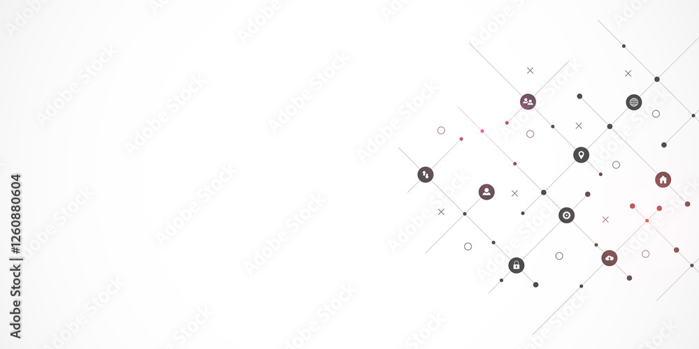Information technology background with infographic elements and flat icons - digital technology, netwWall mural