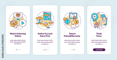 The watermark will not be included on Wall mural.: Informed customer tips onboarding mobile app page screen with concepts - unboxing videos, thinking tw