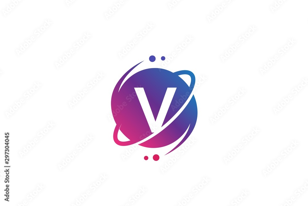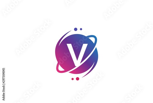 Wall mural initial letter circle planet with orbit and dots gradient color logo template