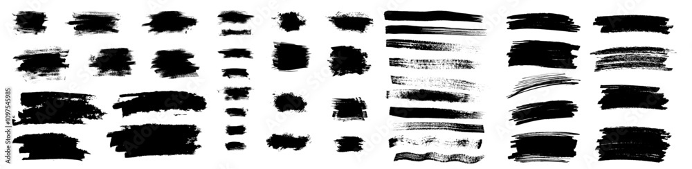 Wall mural : Ink brush paint strokes - black vector grunge paintbrush textured line frames background - grungy brus
