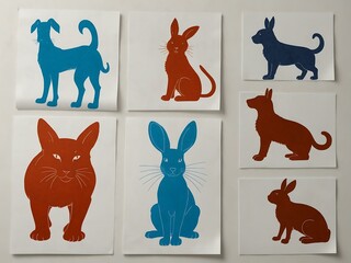 Wall mural Ink instance of animals bridge player drawn and isolated on a white background  - Wall murals Wall mural Ink instance of animals bridge player drawn and isolated on a white background - Wall murals