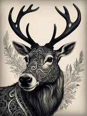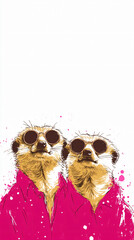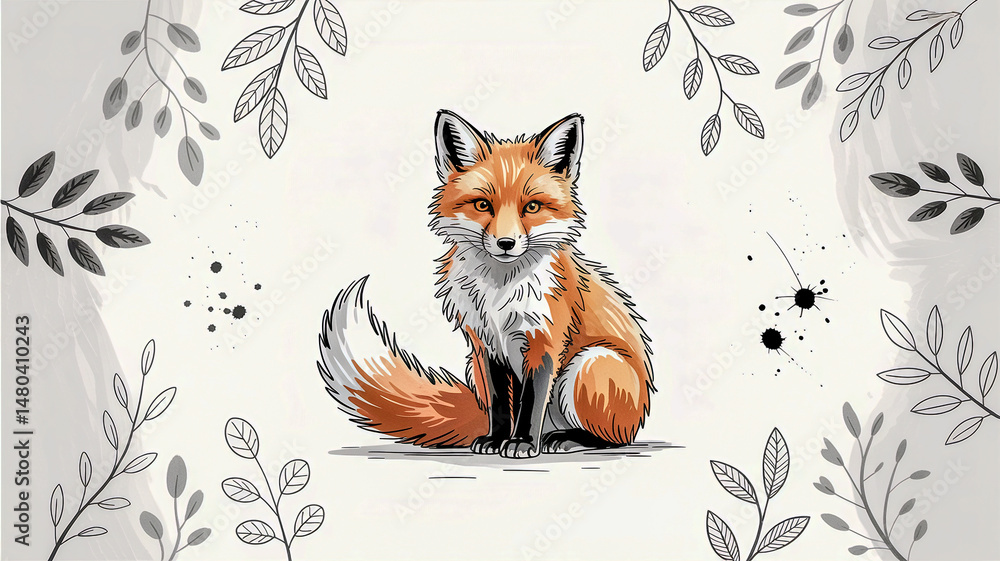 The watermark will not be included on Wall mural.: Ink instance of animals bridge player drawn and isolated on a white background