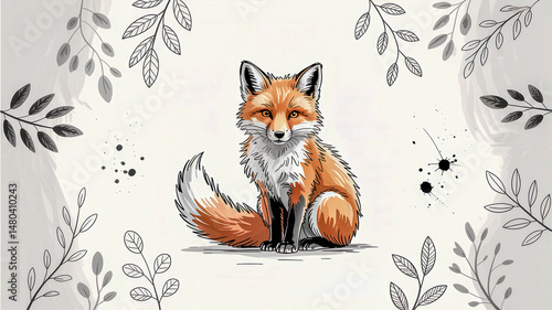 Wall mural : Ink instance of animals bridge player drawn and isolated on a white background