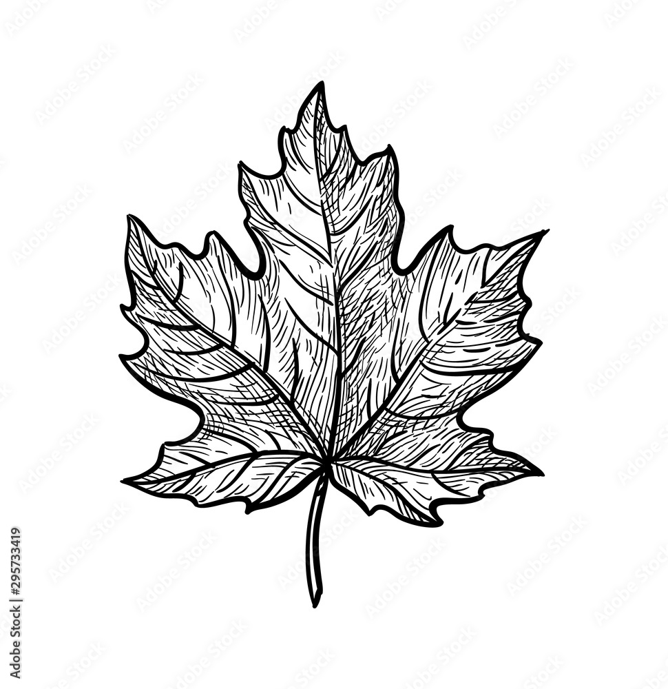 The watermark will not be included on Wall mural.: Ink sketch of maple leaf -