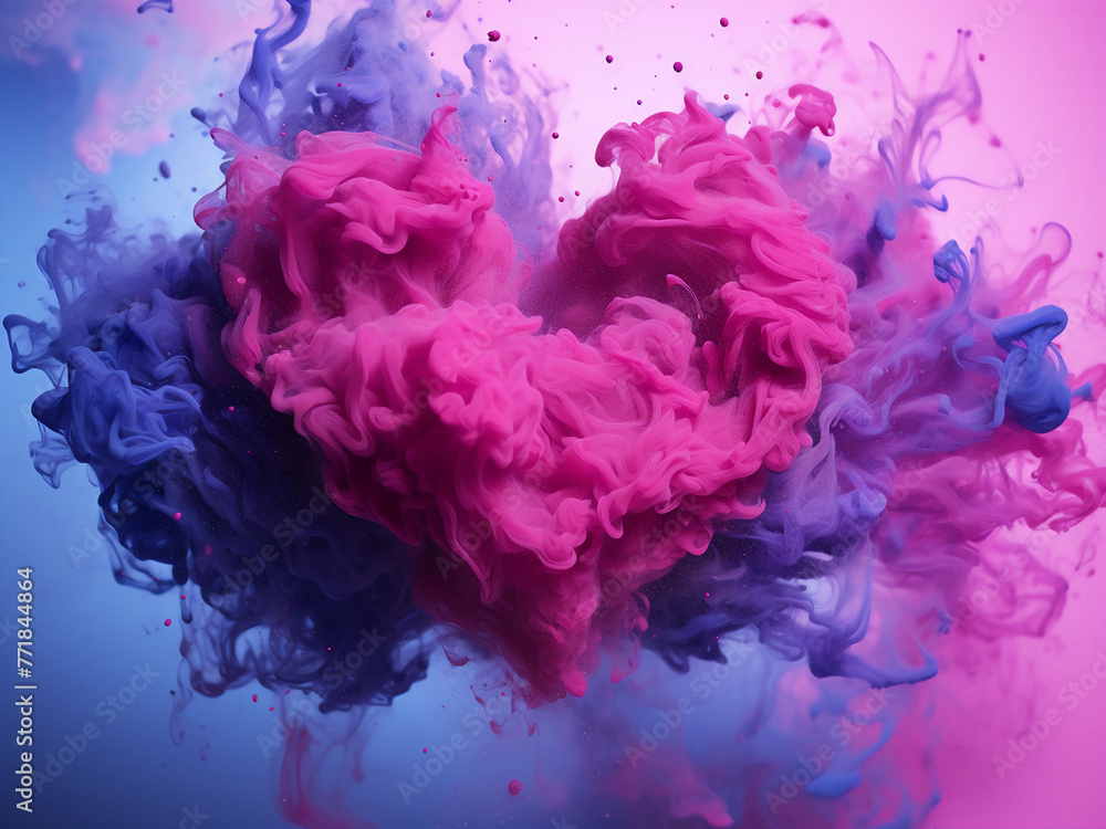 Wall mural : Ink splashes and vapor clouds form a heart shape design -