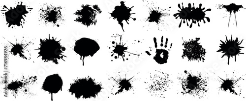 Wall mural : Ink splatter, paint splatter vector set, black paint splashes on white background, artistic design e