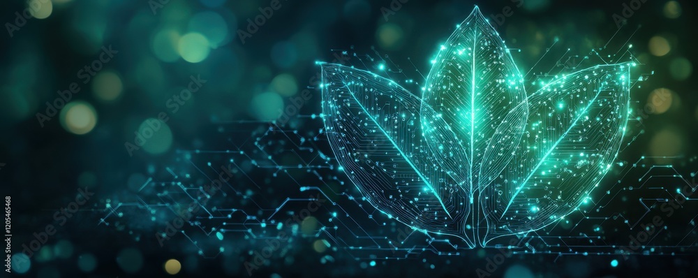 Wall mural innovative ai technology concept with digital leaf and circuit patterns - Wall murals Wall mural innovative ai technology concept with digital leaf and circuit patterns - Wall murals