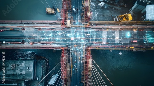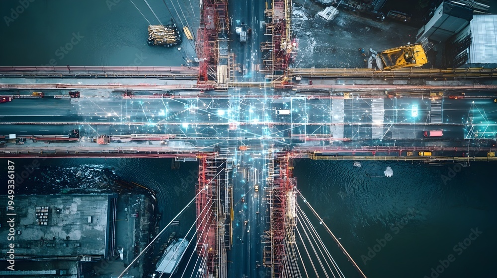 Wall mural innovative iot powered bridge construction site optimizing traffic flow and monitoring construction  - Wall murals Wall mural innovative iot powered bridge construction site optimizing traffic flow and monitoring construction - Wall murals