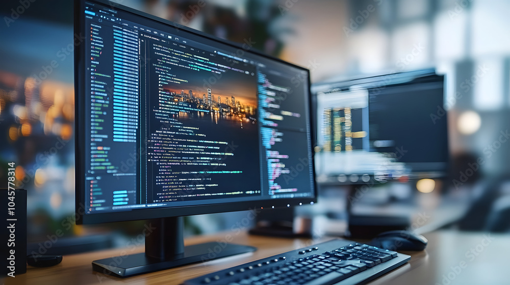 Wall mural : Innovative software engineering: dynamic programming and application development visualized on a mod