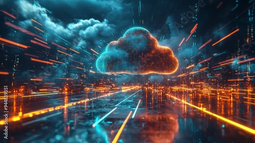 Wall mural : Intelligent cloud infrastructure management, advanced ai-driven interface managing digital pathways