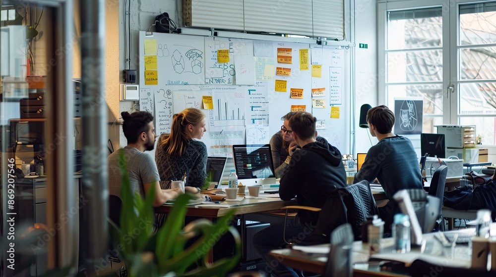 Wall mural intense at fintech hackathon developers strategize with futuristic tech prototypes - Wall murals Wall mural intense at fintech hackathon developers strategize with futuristic tech prototypes - Wall murals