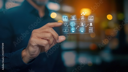 Wall mural interactive survey holograms floating around a hand. - Wall murals Wall mural interactive survey holograms floating around a hand. - Wall murals
