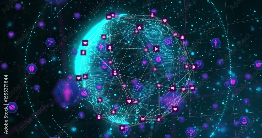 Wall mural interconnected icons glowing over globe in digital network image design - Wall murals Wall mural interconnected icons glowing over globe in digital network image design - Wall murals