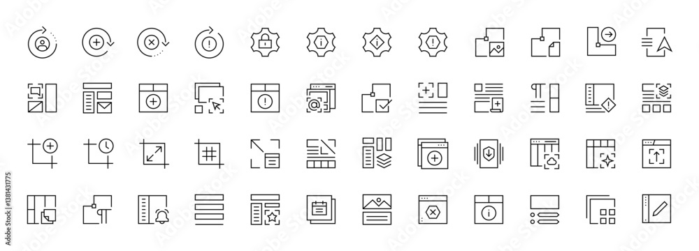 Wall mural interface and layout icon set. ui/ux basic outline icons collection. user interface, essential, inte - Wall murals Wall mural interface and layout icon set. ui/ux basic outline icons collection. user interface, essential, inte - Wall murals
