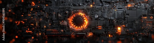 Wall mural interface with glowing elements. high-tech design background featuring intricate details and vibrant