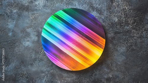 Wall mural : Interference color bands create vibrant rainbow spectrum patterns on circular optical element displa