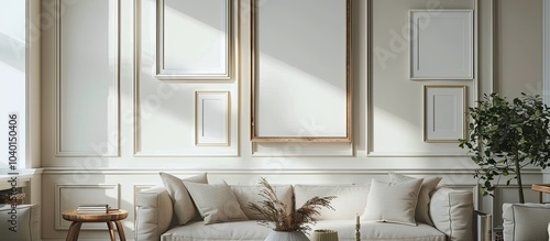 The watermark will not be included on Wall mural.: Interior with wall and table photo frames creating a charming ambiance with copy space image