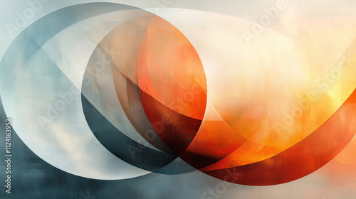 Wall mural interlocking circles in soft blue and fiery orange on a textured background create a serene abstract - Wall murals Wall mural interlocking circles in soft blue and fiery orange on a textured background create a serene abstract - Wall murals