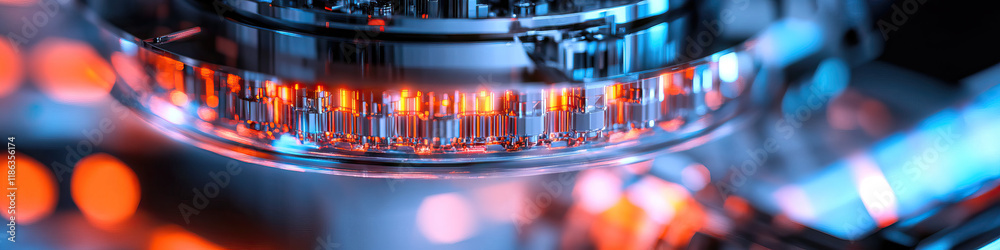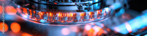 The watermark will not be included on Wall mural.: Internal mechanism of a complex machine with illuminated components