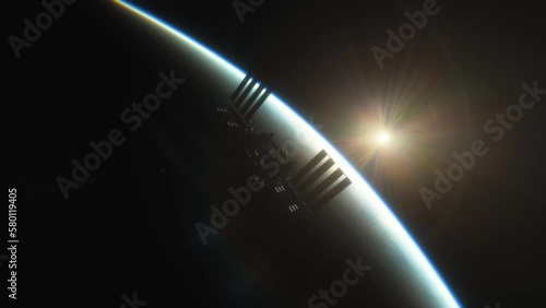 The watermark will not be included on Wall mural.: International space station iss floating in orbit above planet earth in outer space - view from space