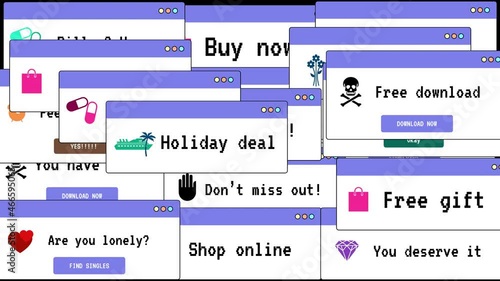 The watermark will not be included on Wall mural.: Internet ad popup window - motion graphic of computer interface windows popping up with advertising d