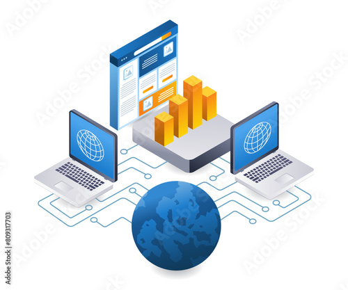 The watermark will not be included on Wall mural.: Internet application developer technology infographic 3d illustration flat isometric