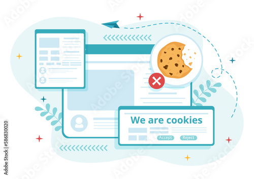 Wall mural internet cookies technology illustration with track cookie record of browsing a website in flat cart - Wall murals Wall mural internet cookies technology illustration with track cookie record of browsing a website in flat cart - Wall murals