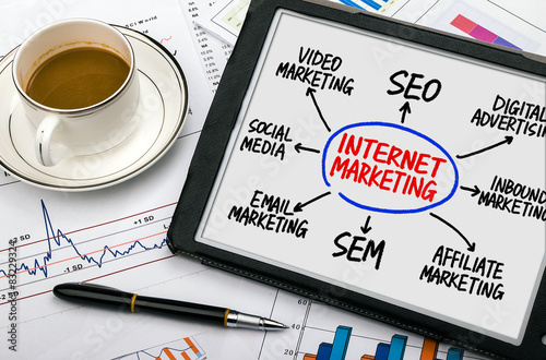 Wall mural : Internet marketing flowchart hand drawing on tablet pc